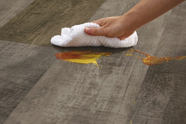 - Sử dụng một miếng vải để ngay lập tức làm sạch bất kỳ chất lỏng nào trên sàn.